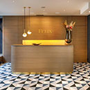 WC Anlagen verlegt mit 7.5/15cm Equipe Platten im Englisch Verband, dabei als Belagsabschluss oben und unten mit Fries.